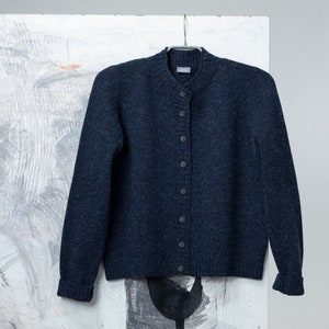Button down wool cardigan, Handmade wool sweater, Natural dark blue wool cardigan, Hand knitted womens wool top, Organic wool cardigan