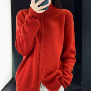 Cashmere wool double zip cardigan, Wool autumn winter zip sweater, Luxury cashmere wool jumper