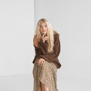 Chocolate brown alpaca wool and silk cable knit cardigan, coffee brown chunky knitted lightweight loose sweater, slightly oversized classic