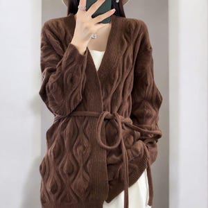 Merino wool long cardigan, Wool autumn winter pocket cardigan, Luxury cosy wool sweater, Merino wool loose warm knitwear